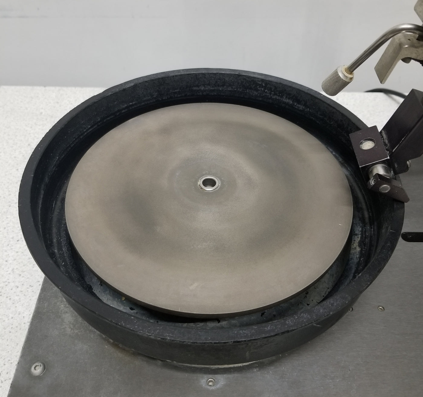 Variable speed 8” diameter polishing wheel. Micro positioning