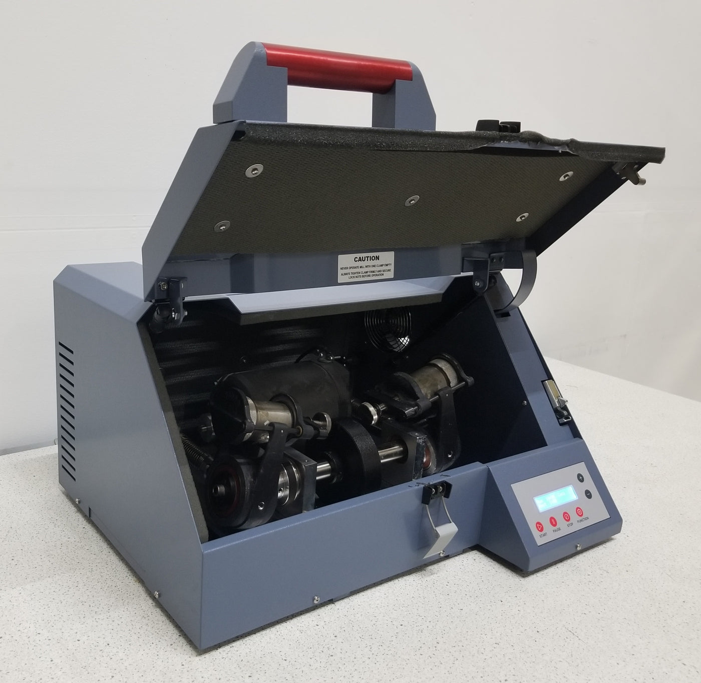 These rugged mixer mills come with many safety features. Vibration detection switch shuts down the mill in the event of mechanical failure. Safety interlock and lid latch ensure user safety. Forced air cooling fan prevents overheating. Shock-mounted electric motor cuts back vibration and prolongs motor life. Steel housing and rugged construction ensure a long life of heavy work. 115V, 50/60Hz.