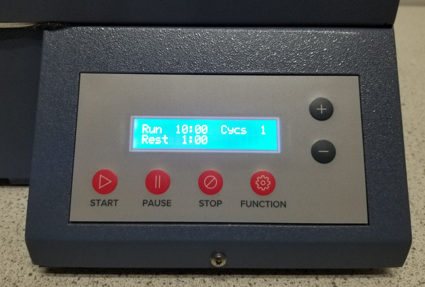 Easily pulverize hard or brittle samples to analytical fineness in minutes. Use these powerful ball mills for mechanical alloying, slurry grinding, blending powders, mixing emulsions, and mechanochemistry. The sample is placed in a grinding vial with one or more balls, then shaken vigorously. The clamp swings back-and-forth 2-1/3” (5.9 cm) with a short lateral “figure-8” movement, producing strong G-forces on the vial to pulverize the toughest samples. Adjustable clamp accepts vials in various materials to effectively grind all sample types and to avoid contamination from specific elements. View time remaining on the digital display. Pause and stop buttons let you pause or stop any time during the process. Order dual-clamp model for high-throughput applications.