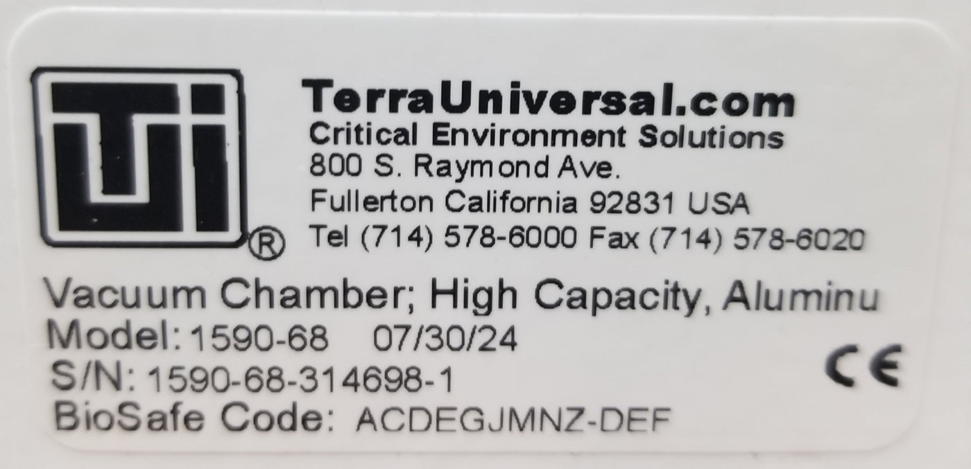 Terra Universal 1590-68 Vacuum Chamber; High Capacity, Aluminum, 35" W x 35" D x 35.5" H ID