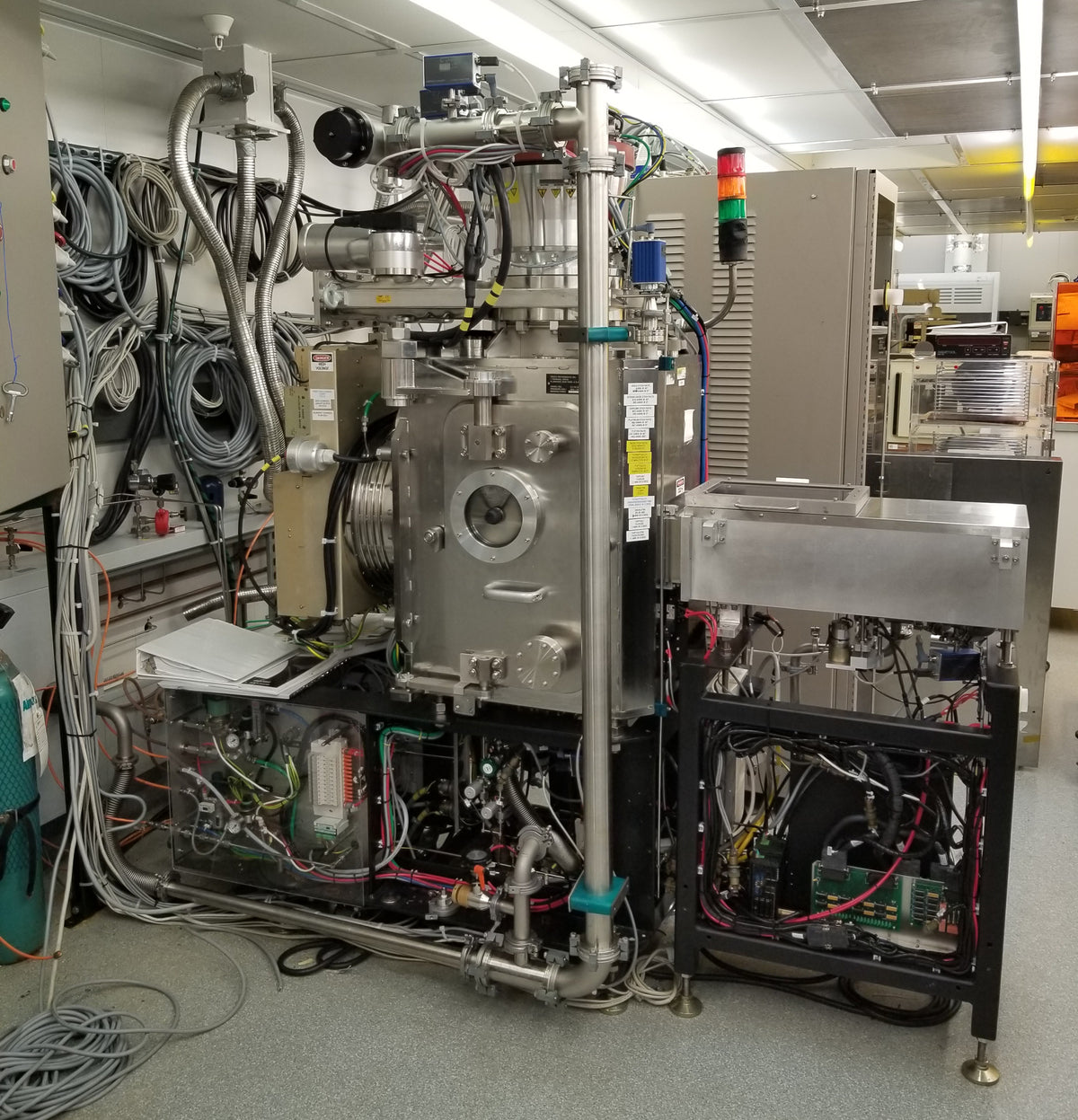 Veeco RF-350 Ion Mill is a high-precision, automated, single-substrate loadlocked production system (or configurable to cassette-to-cassette) designed for ion beam etching (IBE) and Reactive Ion Beam Etching (RIBE). It features a 300mm diameter, inductively coupled, filamentless RF ion source that offers exceptional uniformity, versatility, and controllable etch rates for applications in MEMS, semiconductor fabrication, and data storage.